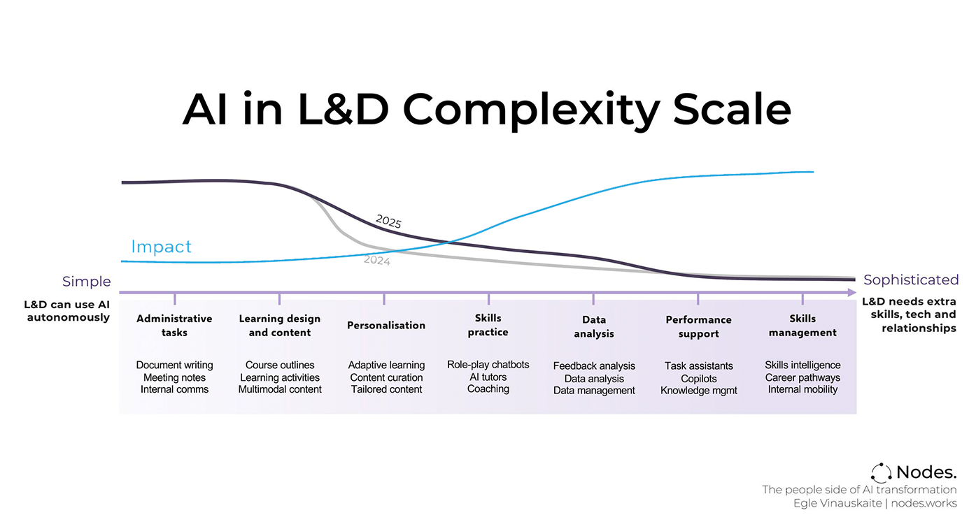 Een reeks onderzoeken getiteld ‘AI in L&D’, van de auteurs Donald H. Taylor (Eredoctoraat Workplace Learning and Development) en Eglė Vinauskaitė (medeoprichter AI learning collective), laat zien dat deze toepassingen in verschillende mate worden gebruikt.