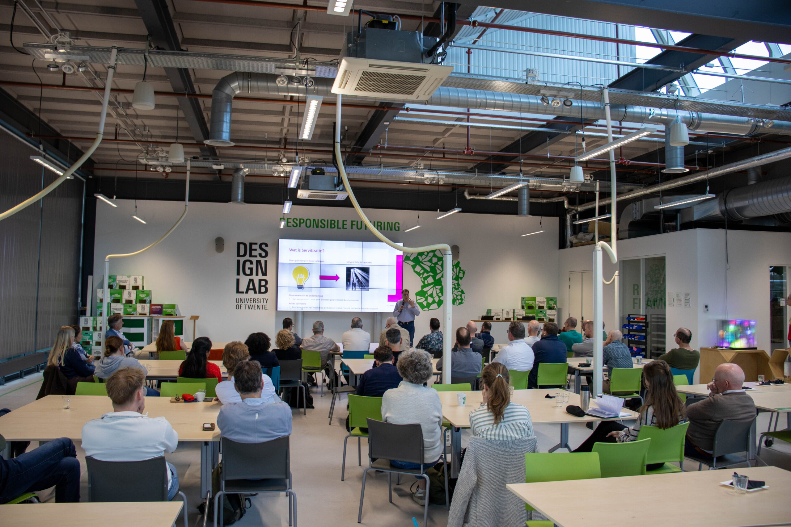Jelte Meijer van Eluxis sloot de dag af met een presentatie over servitisatie. Service is net als machines een product dat een eigen ontwikkelingstraject vereist. Denk hierbij aan het tastbaar maken van de service, het vastleggen van de waarde voor de klant en het bepalen van de implementatie in de organisatie. Per fase zijn verschillende documenten en templates beschikbaar om het service-product zo goed mogelijk in kaart te brengen. Jelte benadrukte dat het service-product in alle productontwikkelingsfases betrokken moet worden, bijvoorbeeld via ‘design for support’: kan een monteur een onderdeel vervangen, of is dat praktisch onmogelijk door het ontwerp? Een succesvolle serviceontwikkeling vraagt om betrokkenheid van alle partijen gedurende de hele productcyclus.