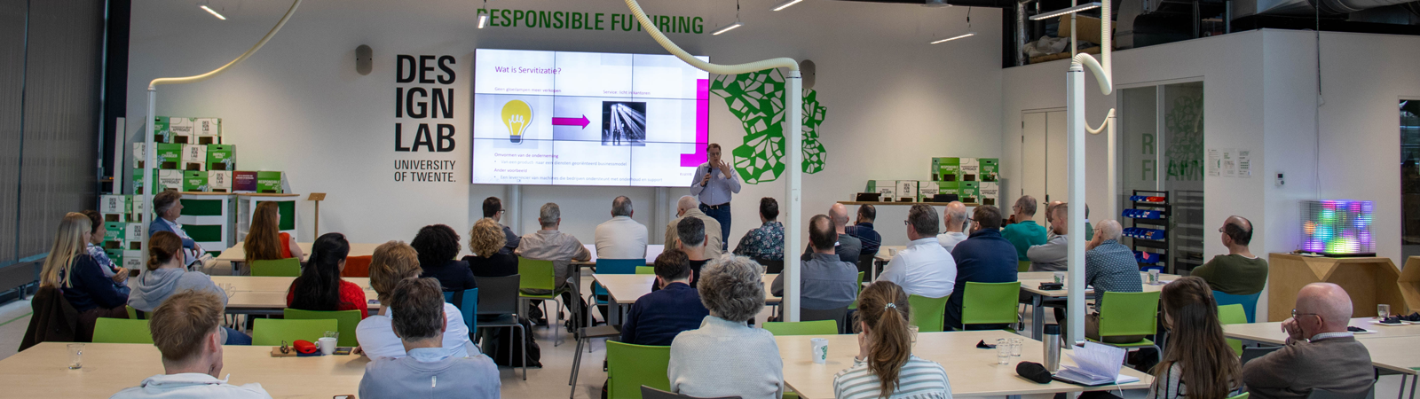 Jelte Meijer van Eluxis sloot de dag af met een presentatie over servitisatie. Service is net als machines een product dat een eigen ontwikkelingstraject vereist. Denk hierbij aan het tastbaar maken van de service, het vastleggen van de waarde voor de klant en het bepalen van de implementatie in de organisatie. Per fase zijn verschillende documenten en templates beschikbaar om het service-product zo goed mogelijk in kaart te brengen. Jelte benadrukte dat het service-product in alle productontwikkelingsfases betrokken moet worden, bijvoorbeeld via ‘design for support’: kan een monteur een onderdeel vervangen, of is dat praktisch onmogelijk door het ontwerp? Een succesvolle serviceontwikkeling vraagt om betrokkenheid van alle partijen gedurende de hele productcyclus.